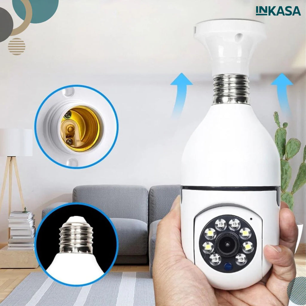 La CÁMARA DE SEGURIDAD PANORÁMICA 360 GRADOS es la solución perfecta para proteger tu hogar y tus seres queridos 🏡. Con un diseño innovador que se adapta a cualquier base de bombilla E27, esta cámara de vigilancia te ofrece una cobertura total sin puntos ciegos, garantizando tranquilidad las 24 horas del día.